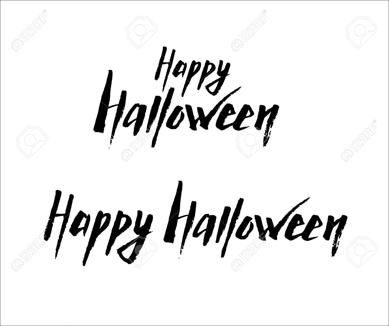 怖い手描きハッピーハロウィン白い背景で隔離のレタリングします。黒ロゴ ポスター、グリーティング カード、ロゴのベクトル イラスト。の写真素材・画像素材Image 87603896。