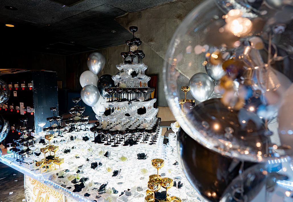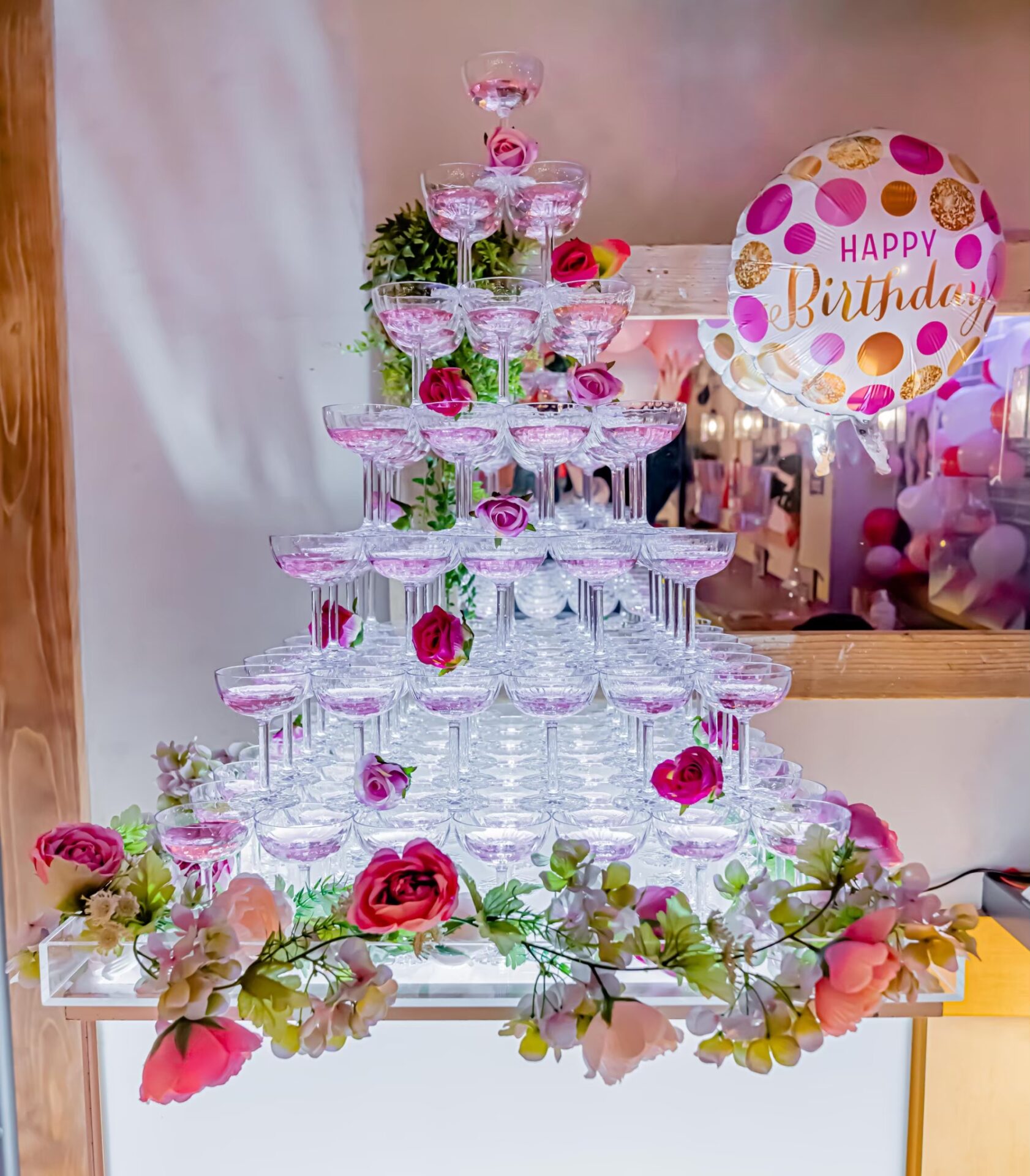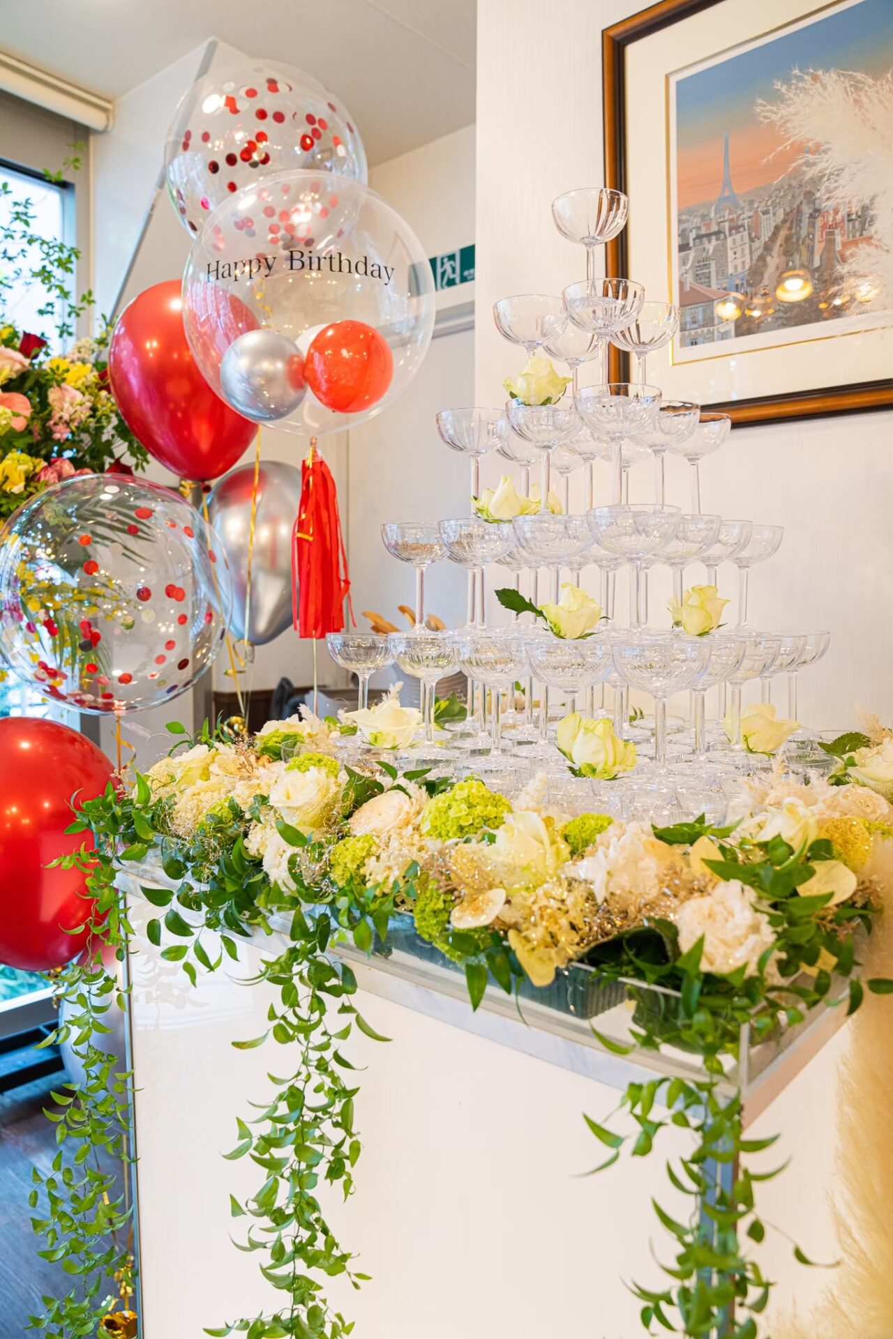 シャンパンタワーの出張設置&レンタル 装飾まで実施全国対応のバルーン装飾ならORYZAE。