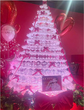 綿菓子でシャンパンタワー♪ シャンパンタワー 円形10段 ホスト ホストクラブ 柏ホスト 千葉ホスト バルーン装飾 店内装飾 綿菓子 わたあめ わたあめタワー ポケモン。