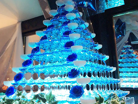 シャンパンタワーレンタル、出張光る台付き つじよ。