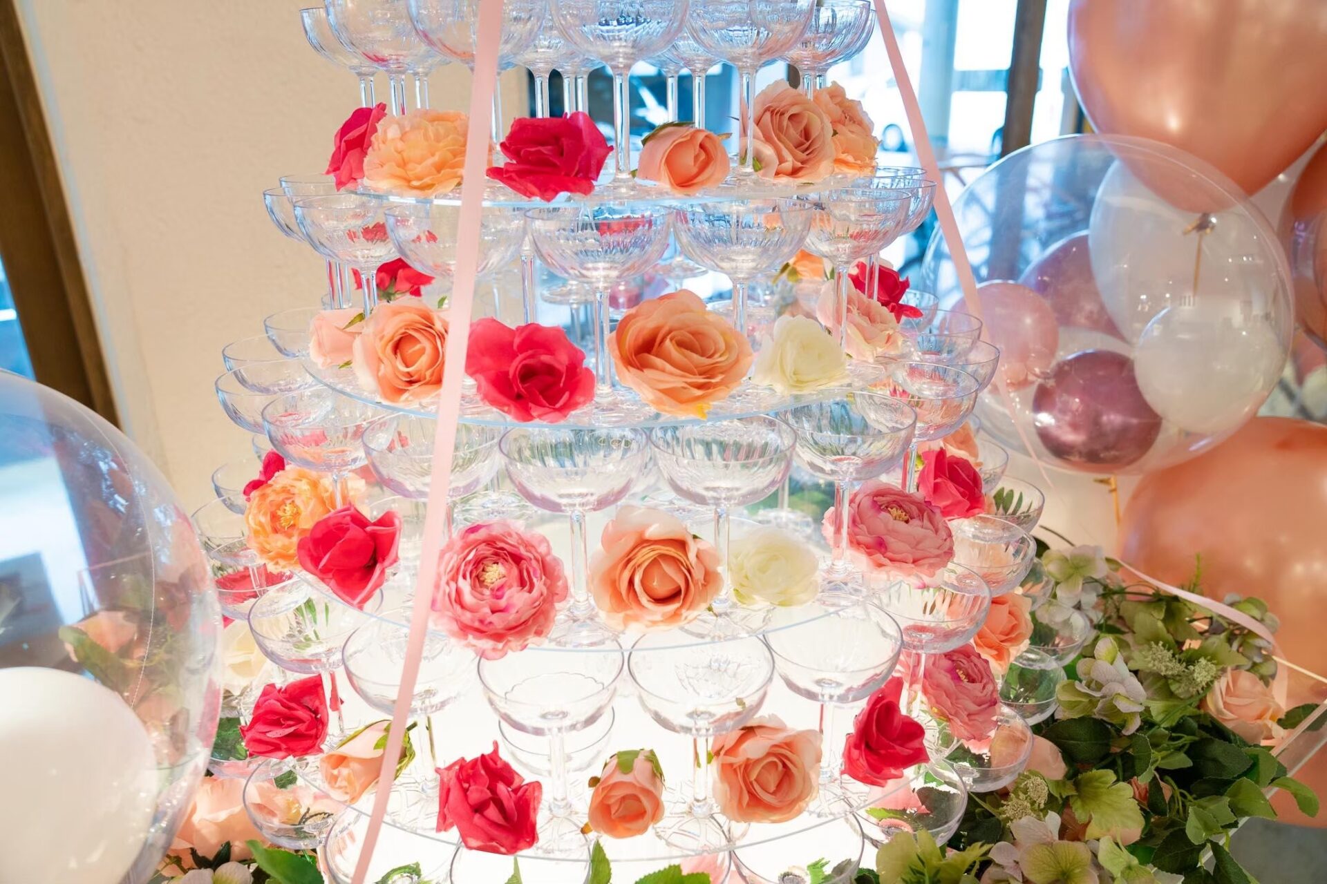 シャンパンタワー - フラワー&バルーンショップBLOSSOM神戸・三宮の花屋。