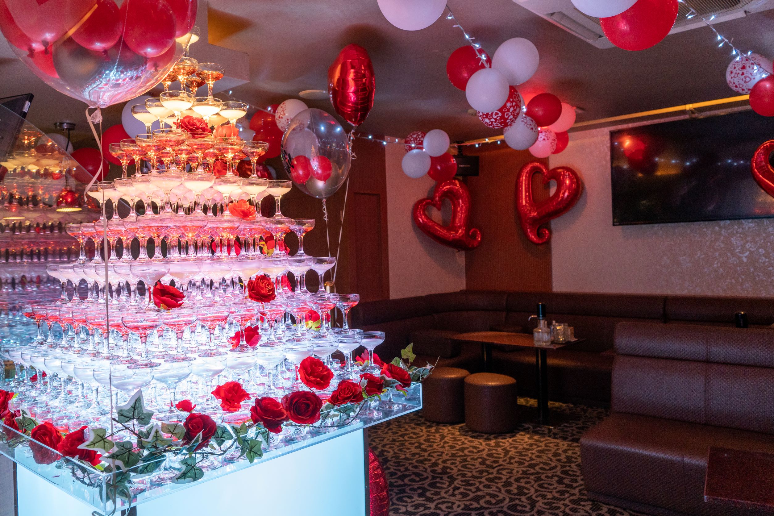 赤、黒のカッコいい仕上がり✨‼️ -スタバルinfo- シャンパンタワー設置のご相談お待ちしております! シャンパンタワー、店内装飾、アーチ、スタンドなどイベントの全てを行えます😊出来るだけお早めにご相談いただけると様々なアイテムの用意が可能なのだお早めに。