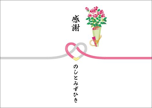 赤い花と水引をあしらったお祝い・お礼用のし紙テンプレート熨斗紙素材館。