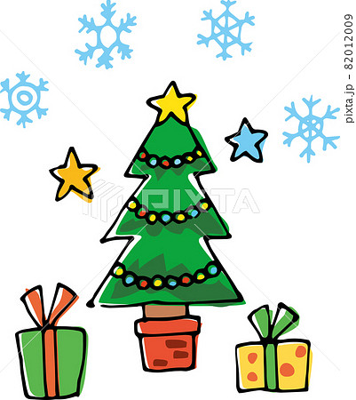 手描きのクリスマスツリーとプレゼントのかわいいイラストのイラスト素材82012009- PIXTA。