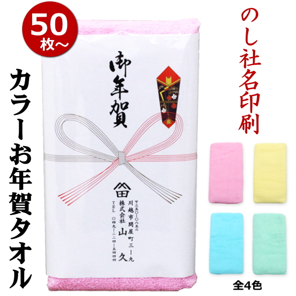 生活雑貨 :: お年賀タオル :: のしのみ名入れ :: カラータオル :: お年賀 タオル のし名入れ付き カラータオル同色50枚以上 端数注文OKお年賀タオル 粗品 販促 熨斗付きタオル返品不可- 手芸の山久 公式サイト。