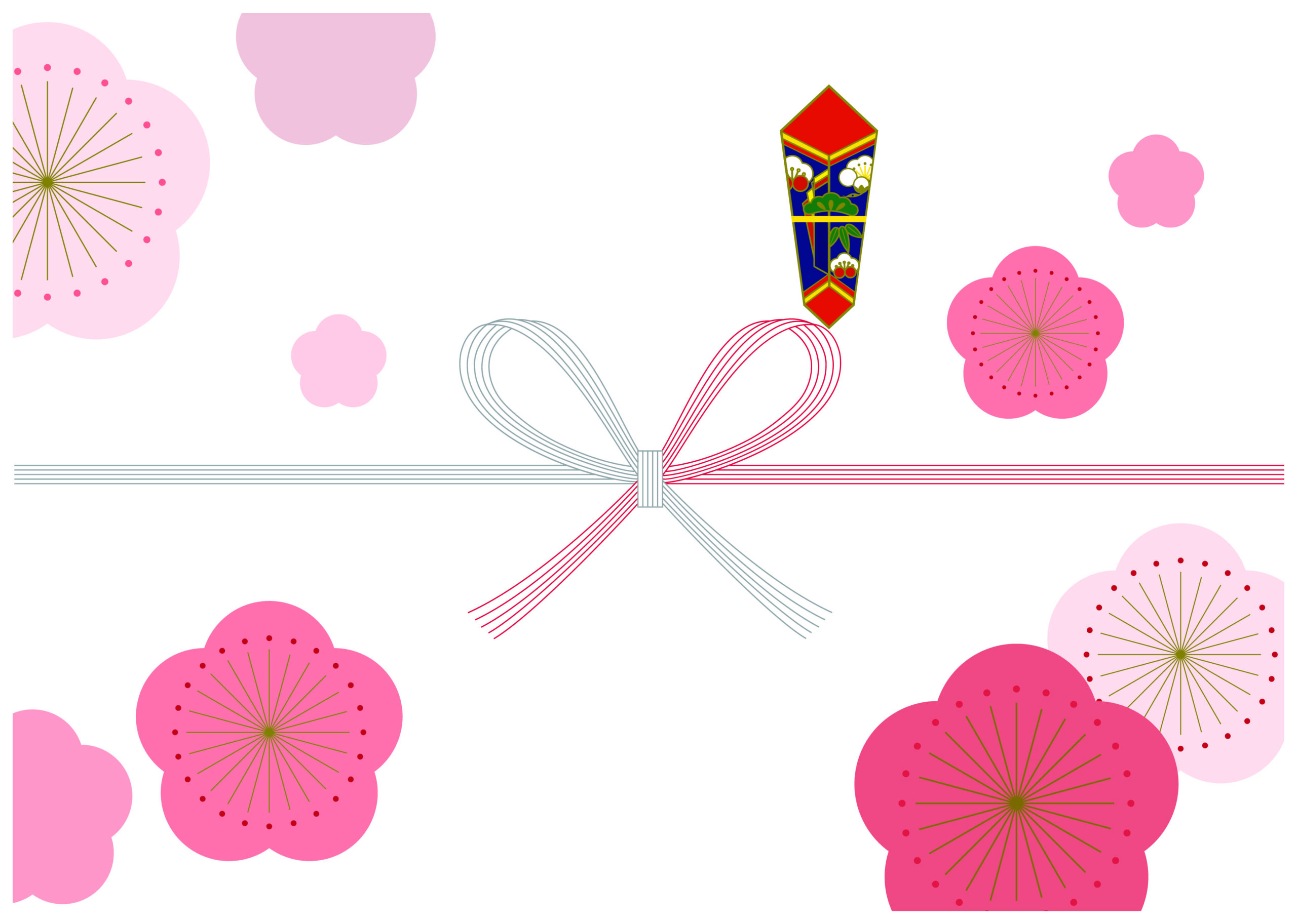 御年賀」用熨斗 のし テンプレート・ピンクの梅の花がかわいい蝶結びデザインで卒業祝いや イラストボックス「プレミアム」テンプレート。