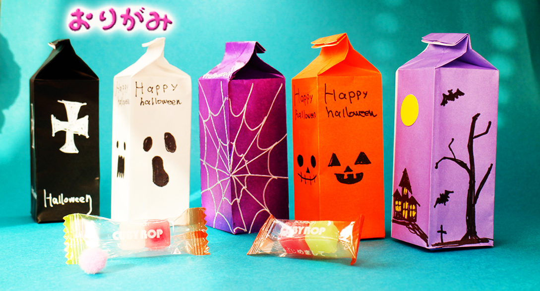 ハロウィン折り紙 牛乳パック型のお菓子・小物入れ キャンディーボックス mama life blog。