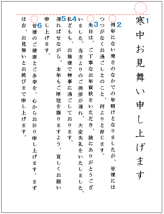 文例 寒中見舞い 喪中の方への新年の挨拶 一般手紙の書き方。