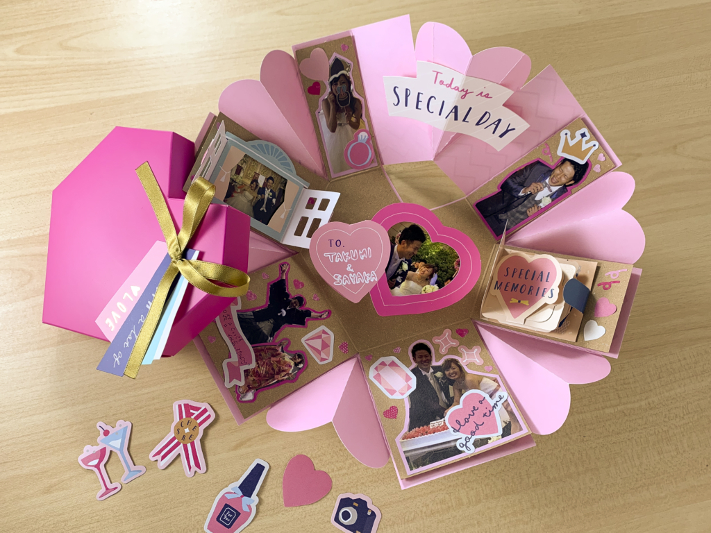 結婚式の特別な1日を詰め込んだハート型のサプライズボックスアルバム! 手作りアルバムアルバムキッチン。