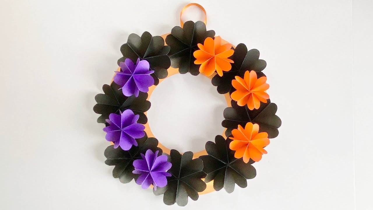 10月の壁面飾り 折り紙のおしゃれなハロウィンリースの作り方!ちょちょいの工作部屋。