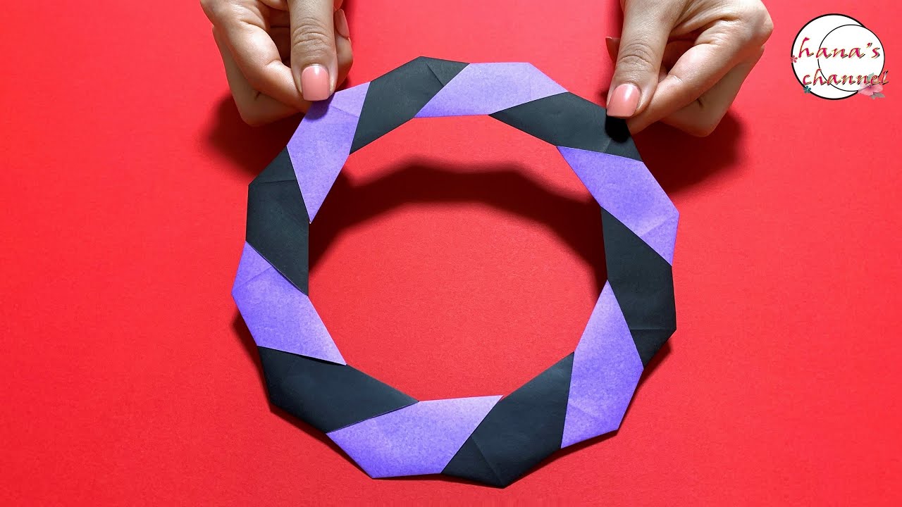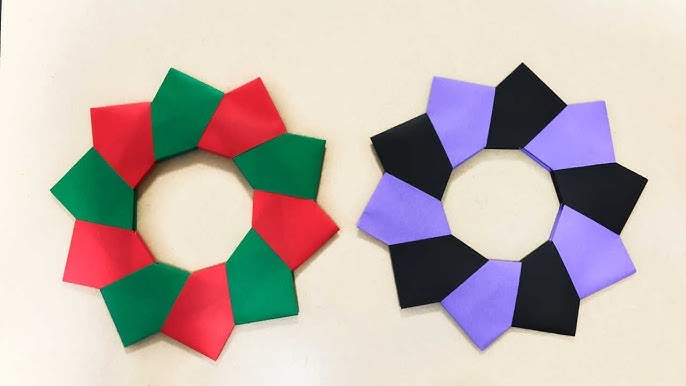 折り紙 実に簡単なリース✨How to make paperwreath 花輪 wreath पुष्पांजलि 花環 화환 ハロウィン Halloween 折り方 おりがみ origami 紙。