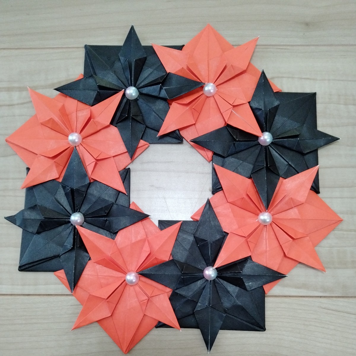 ハロウィン 折り紙8枚で作るハロウィンのリース大人の折り紙インテリア。
