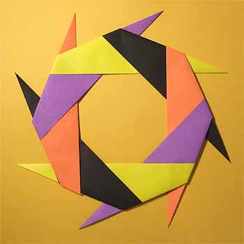 10月ハロウィンの折り紙で作る簡単リース 装飾 の折り方・作り方shigeyuki.net。