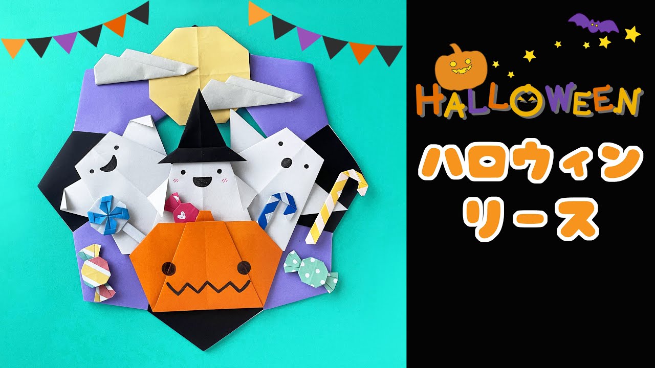 ハロウィン折り紙リースかぼちゃやおばけをつないで作る!工作・自由研究All About。