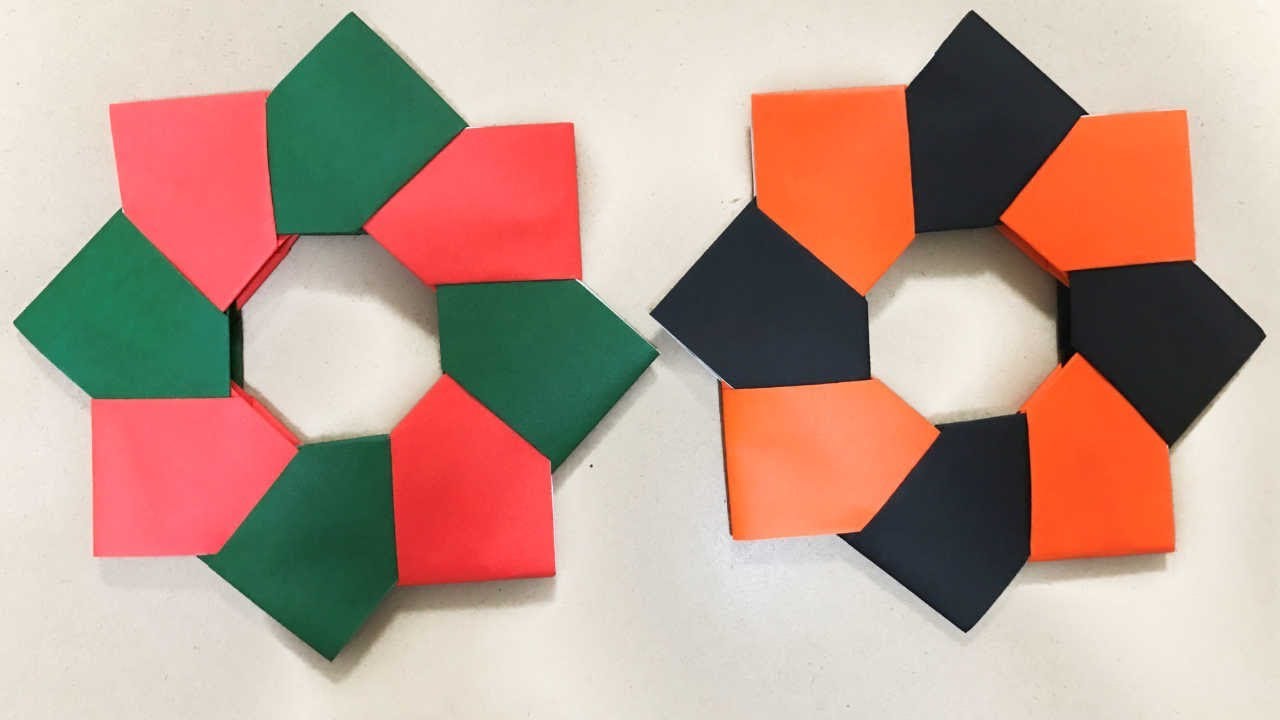 クリスマス&ハロウィン折り紙簡単なリース2の折り方ーChristmas&Halloween Wreath。
