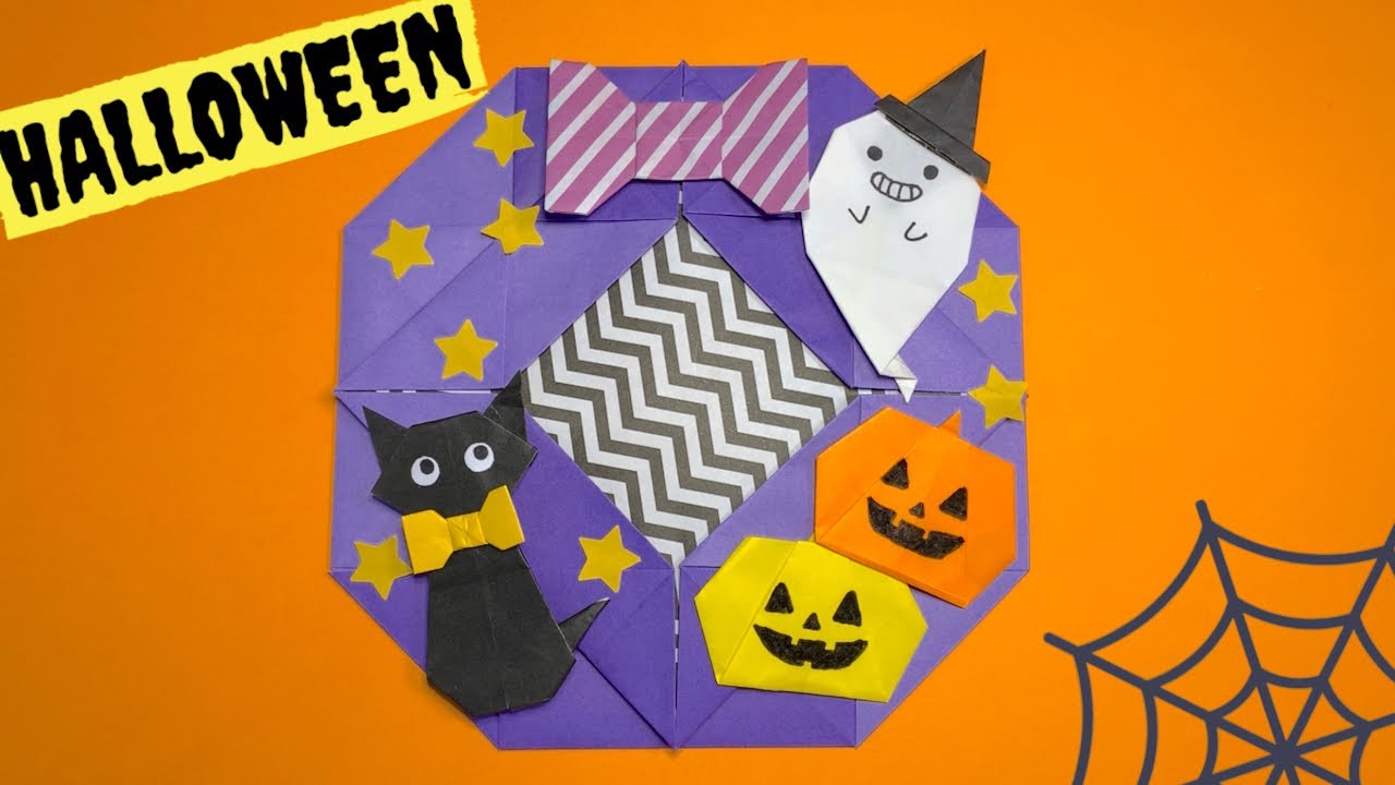ハロウィン折り紙 写真も飾れる♪4枚で作る簡単で可愛いリース の作り方How to Make A Wreath for Halloween。