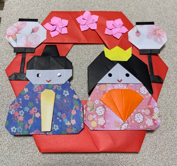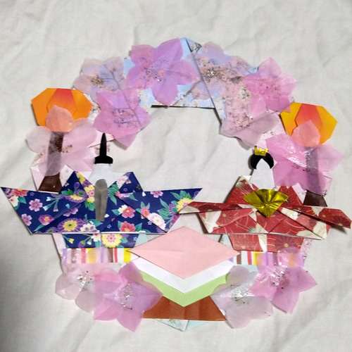 リース飾り 折り紙 おひなさまひなまつり手作り DIY Paper crafts origami。
