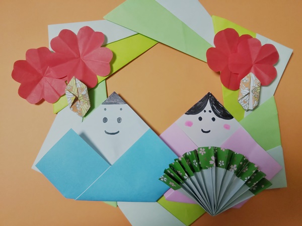 ひな祭りのおしゃれなリースの折り紙。簡単に8枚で完成!高齢者の製作にも♪おりがみっこⅡ。