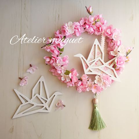 作品紹介」折り紙ひなまつり桜リース200円 折り紙で作る八重桜のリース🌸。