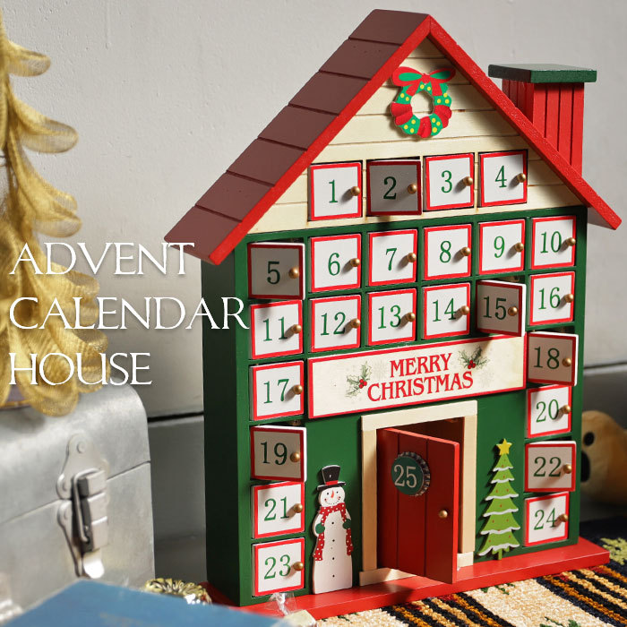 木製 ハウス型 クリスマス アドベントカレンダー LEDライト付き Color and Seasonsアドベントカレンダー ライト。