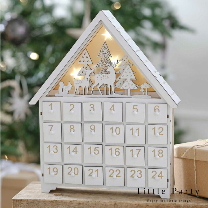 クリスマス アドベントカレンダー 木製 ライトアップ 電飾 LED ホワイト ベージュ Christmas クリスマス 飾り インテリアカウントダウン ツリー Xmas クリスマスインテリア パーティー 飾り付け 装飾 おしゃれ かわいい あす楽Ginger RayLittle。