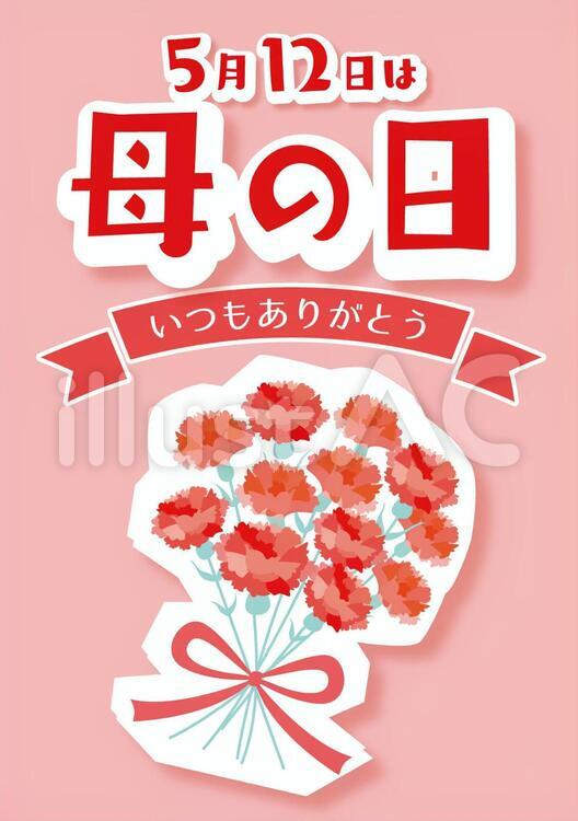 母の日のメッセージセット・2021年:カーネーションのイラストと日付・感謝の言葉入り黒文字POPのイラスト素材75639960- PIXTA。