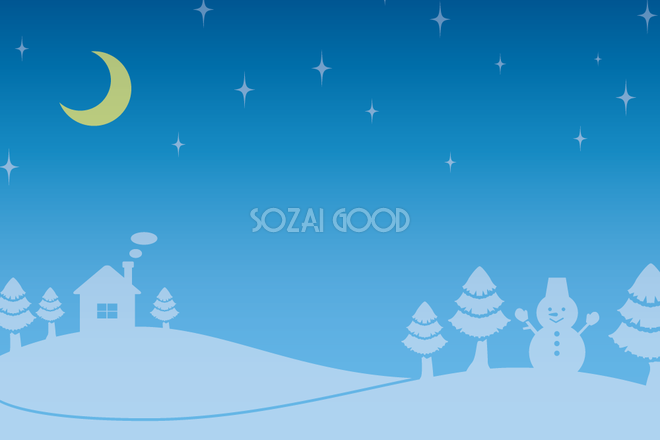 12月イラスト背景「夜の雪景色」37603素材Good。