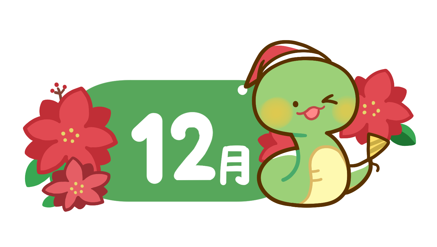 干支・動物・冬 巳年のかわいいカレンダー・日付のフリーイラスト 12月フタバのフリーイラスト。