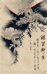 年賀状の型紙 2024年 辰年 辰-13伊勢型紙おおすぎ。