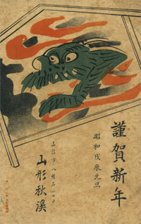 辰年の年賀状絵手紙 その4龍と獅子舞絵手紙教室くぼ田。