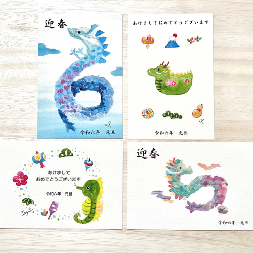 透明水彩画 2024年 年賀状4枚セット 辰年 龍 タツノオトシゴ お正月 ポストカード marron125 通販16760340Creema クリーマ。
