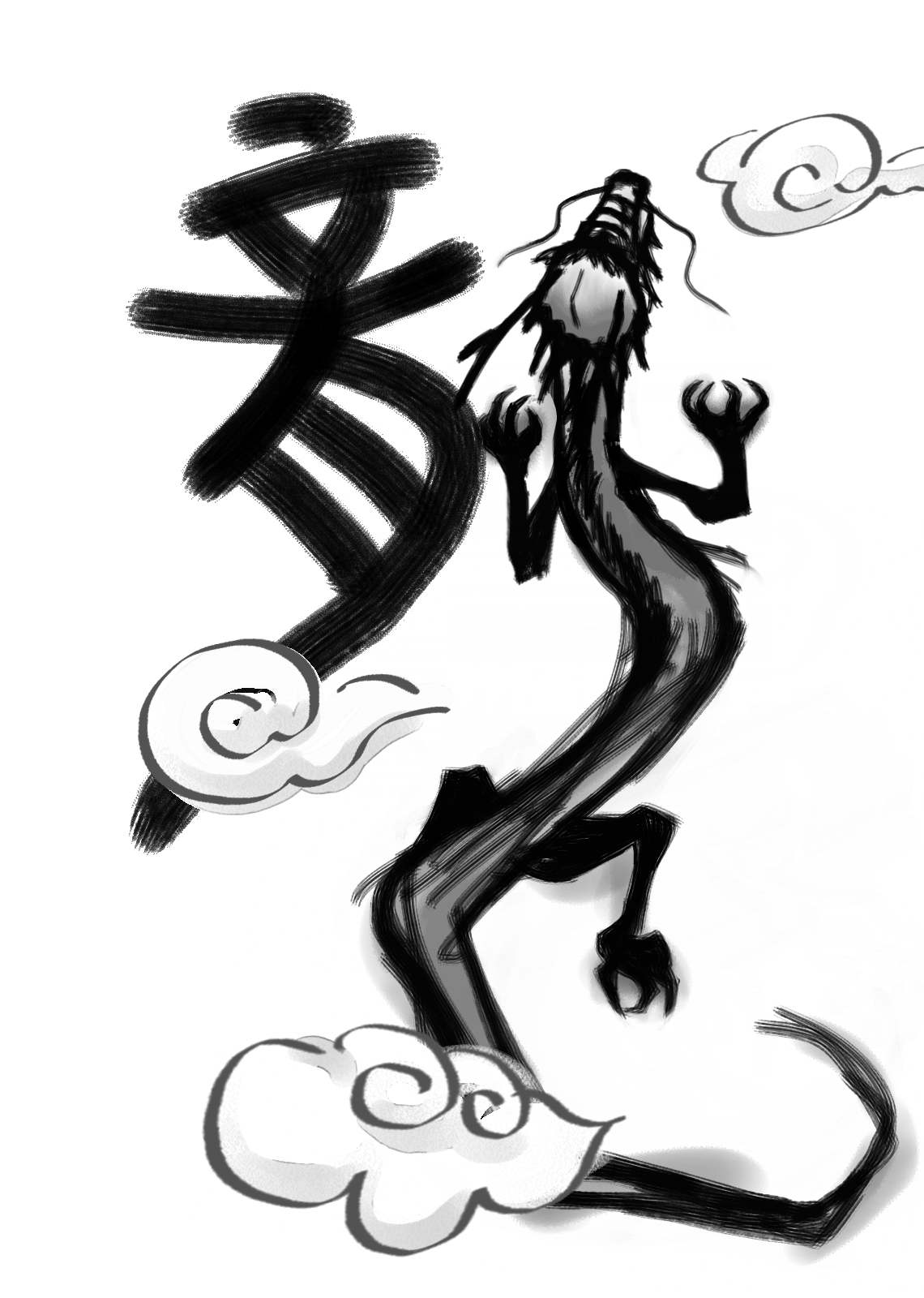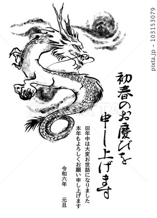 辰年年賀状テンプレート 手描き辰モノクロのイラスト素材103153079- PIXTA。