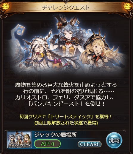 グラブル ハロウィン 限定ミニイベント 復刻 の報酬について。入手できるトリートスティックがランク上げやキャラレベル上げのお供にあると便利。ただ前回のクリア状況引き継ぐ模様。│犬のゲーム日誌〜 グラブルとか白猫とかパズドラな日々まとめ。