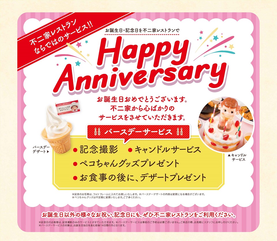 バースデー特典3 お客さん皆で祝ってくれる!不二家レストランリビング埼玉Web。