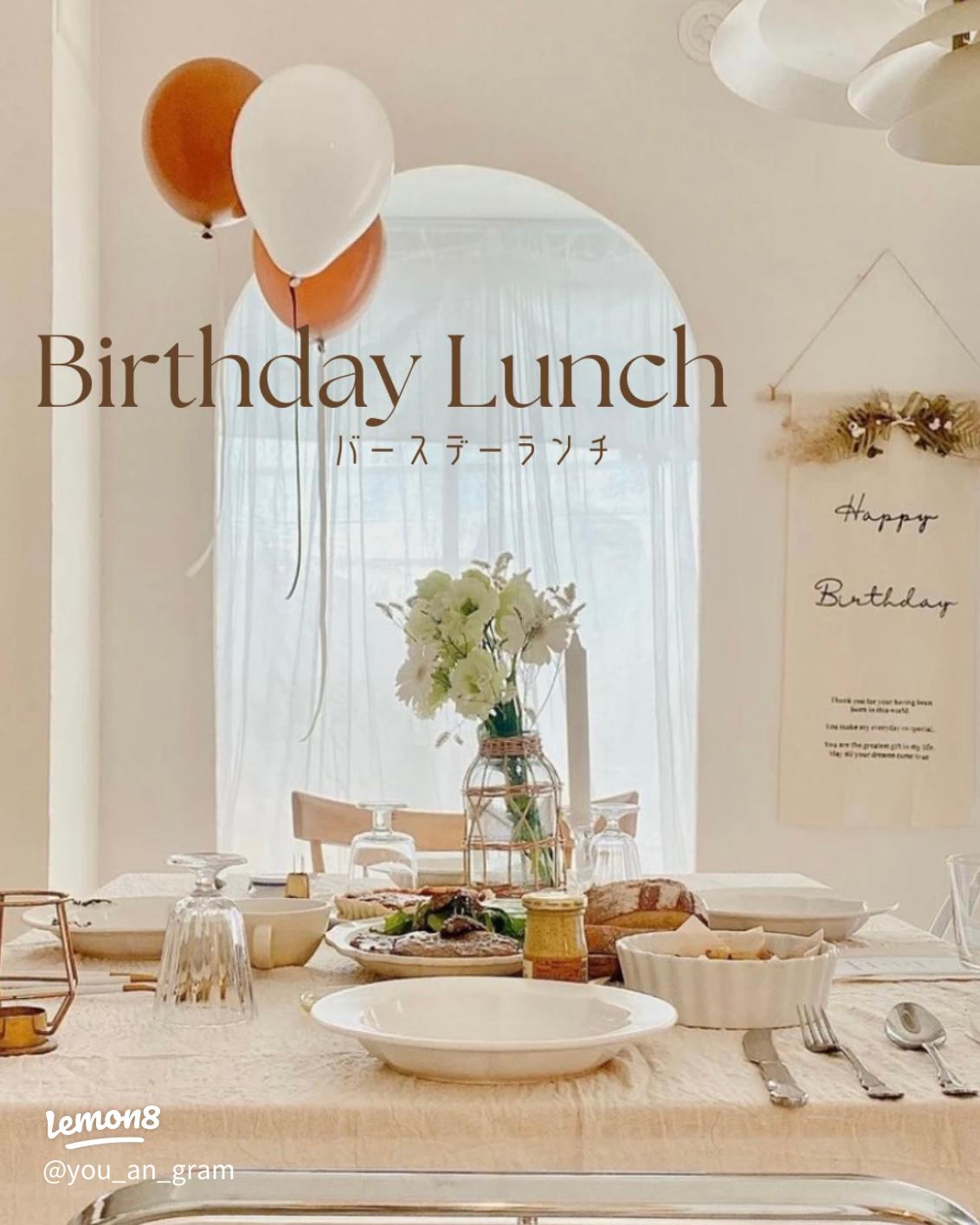 お誕生日ランチのテーブルコーディネートのアイデア。