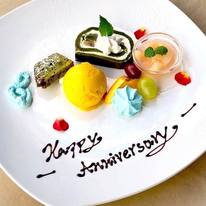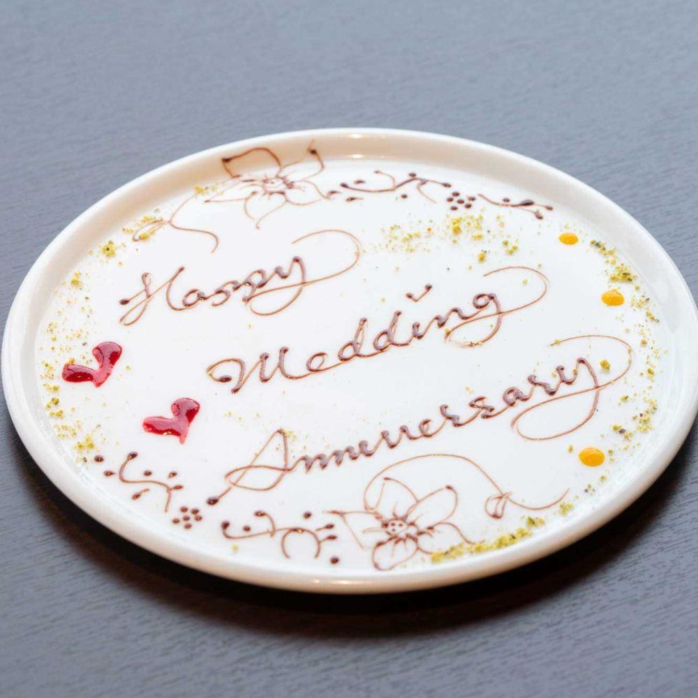 横浜のケーキ・メッセージプレート付きの結婚記念日・アニバーサリー専用ランチ・ディナープラン。