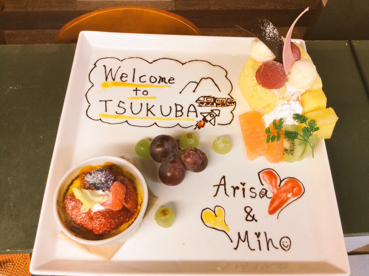 ウェルカムなメッセージ的なプレート。コース料理のデザートも新しくなりました!つくば研究学園のイタリアン東京バル。