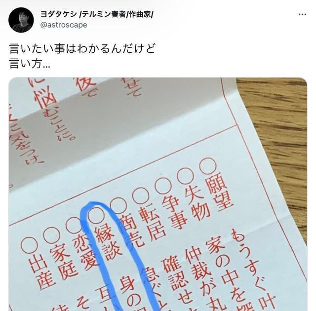 おみくじの結果が心にグサリ「縁談 身の程を知れ」Infoseekニュース。