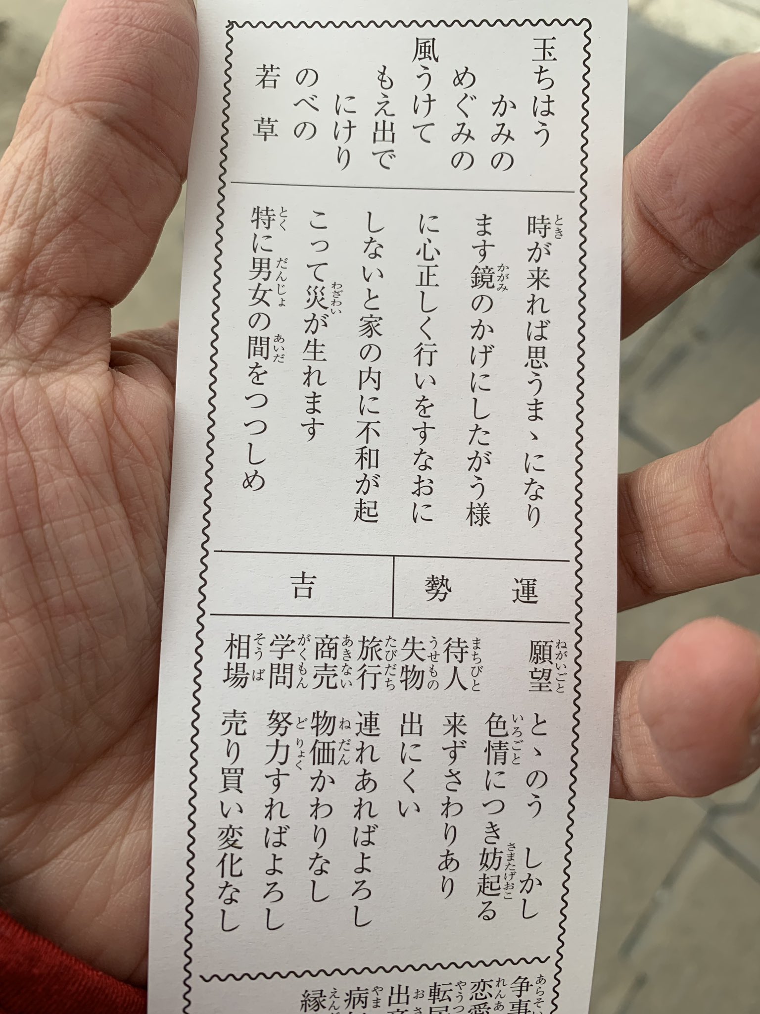 MW岩井 on X: "僕のおみくじ。吉だけど「願事は整う。しかし、色情につき妨げ起こる」 「特に男女の間を慎め」ドキッhttps:t.co CxXLEy7nRW"X。