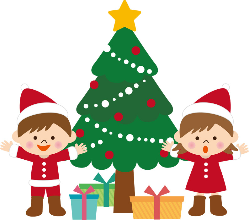 クリスマスツリーの飾り付けをする子どものイラスト無料のフリー素材 イラストエイト。