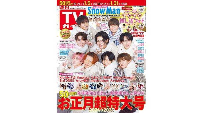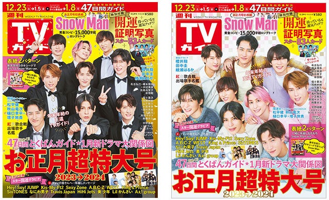 週刊TVガイドお正月超特大号」表紙はSnow Man――きりっとタキシード姿&もちもち重なったニットスタイルの2パターン表紙! 開運証明写真企画も株式会社東京ニュース通信社のプレスリリース。