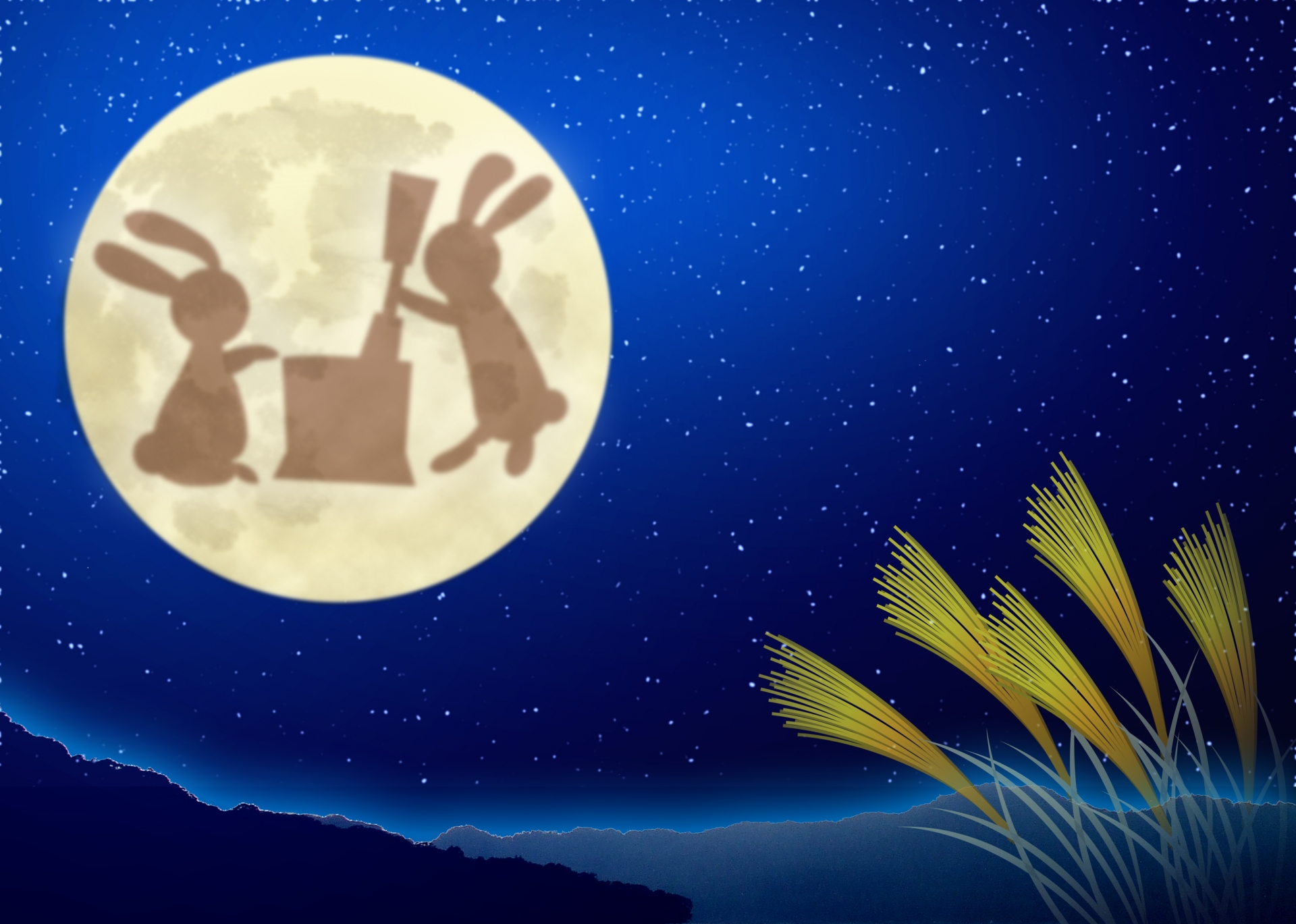 フリーイラスト十五夜の月と踊るウサギパブリックドメインQ:著作権フリー画像素材集。