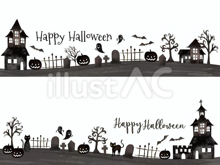 ハロウィンの街並みシルエットイラスト - No: 23013207無料イラスト・フリー素材なら「イラストAC」。