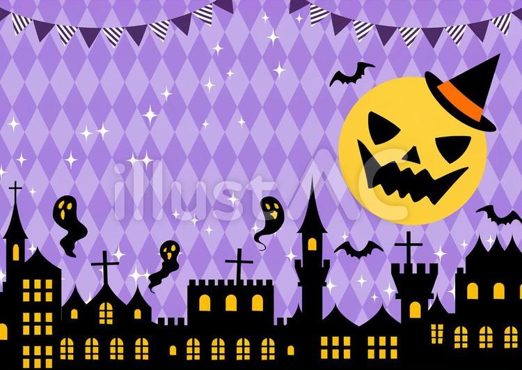 街並みとお化けのハロウィン背景ヨコ紫イラスト - No: 2147191無料イラスト・フリー素材なら「イラストAC」。