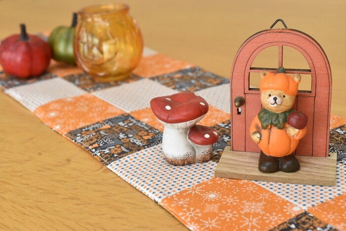 手作りハロウィングッズ ハロウィンカラーの布で作るインテリアグッズ2種nunocoto fabric。