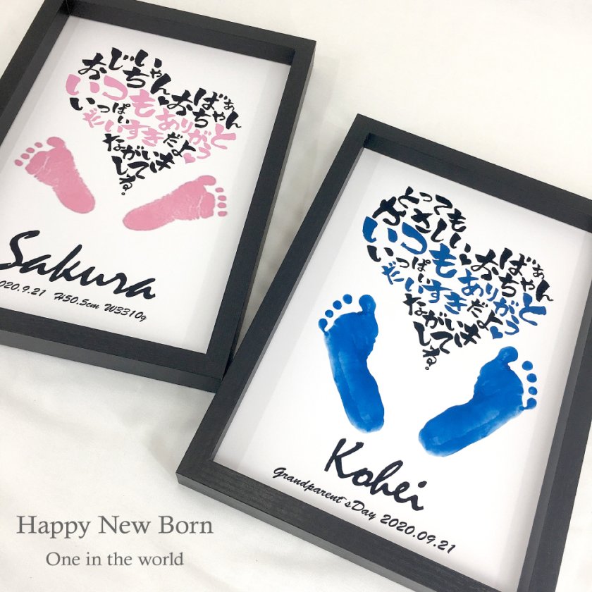 手形 足形 敬老の日ハートフル横◆ ポスター スタンプ 誕生 出産 記念 赤ちゃん ベビー手型 足型 命名書 お祝い 祖父母 プレゼント。