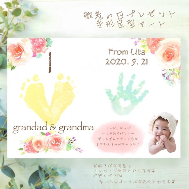 敬老の日のプレゼントに💕手形足形アート ✳︎petaritte✳︎。