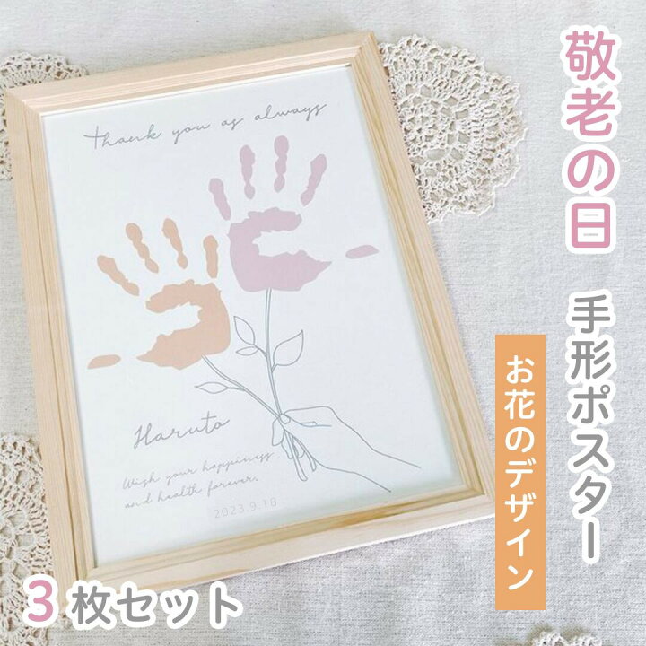 楽天市場名入れ可能 敬老の日ポスターお花のデザイン 手形アート 3枚セット ベビー 記念 名入れ メモリアル ポスター 敬老の日 :Royal pepe。