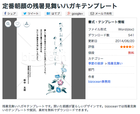 暑中見舞い――例をWordファイルでダウンロード可能│無料ダウンロード『日本の人事部』。