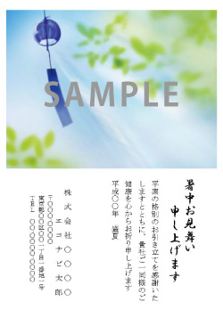 暑中見舞いはがきテンプレート「風鈴」ダウンロードかわいい無料はがきテンプレート はがき絵箱。